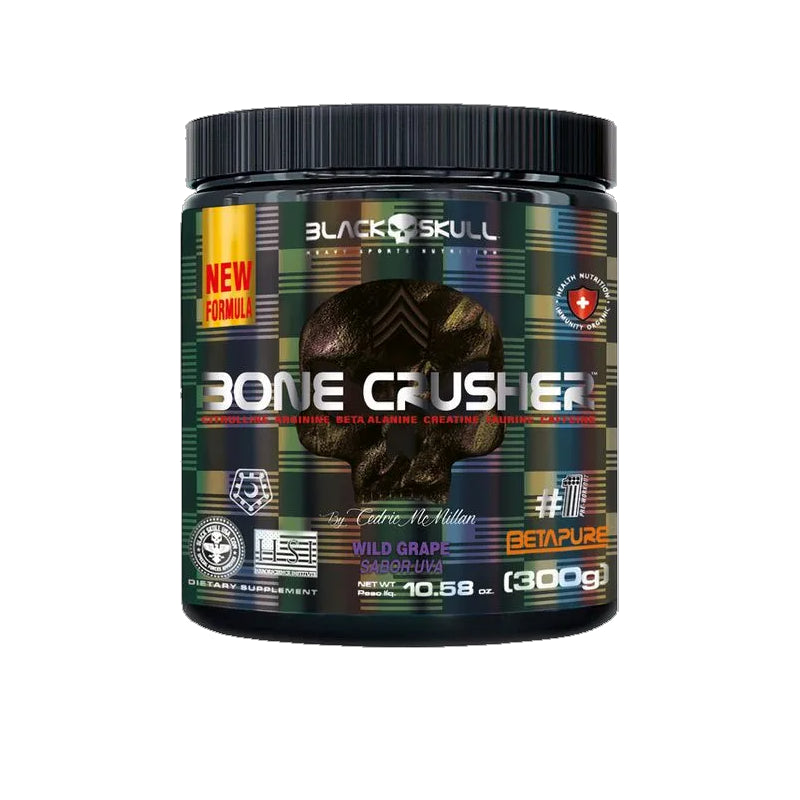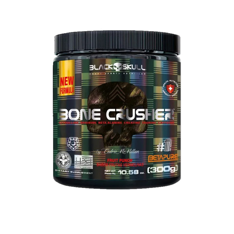 Suporte completo para foco extremo, força e desempenho: o Bone Crusher da Black Skull é um pré-treino de alta potência desenvolvido para aumentar energia, concentração e resistência muscular, melhorando o rendimento durante treinos intensos. Sua fórmula combina cafeína anidra, arginina, beta-alanina e taurina, proporcionando foco mental, vasodilatação e retardo da fadiga — ideal para atletas que buscam performance máxima.