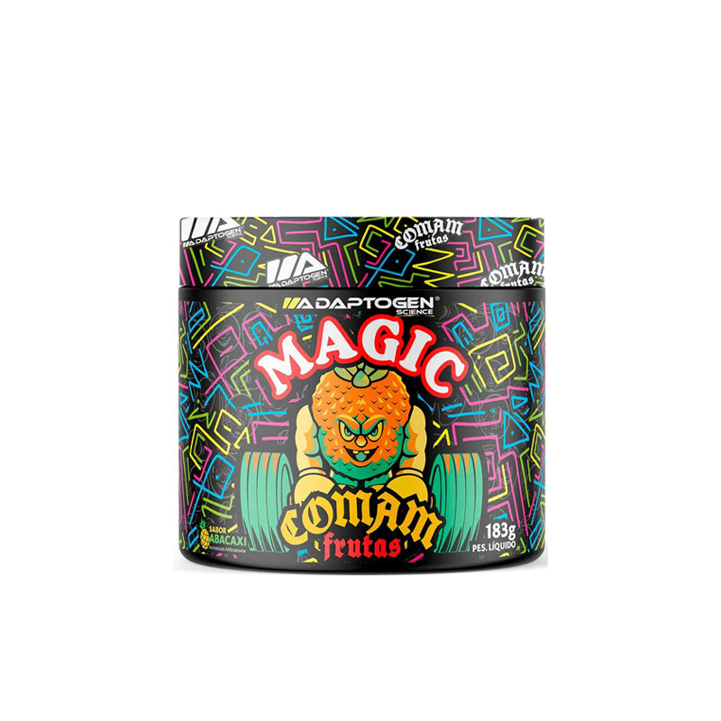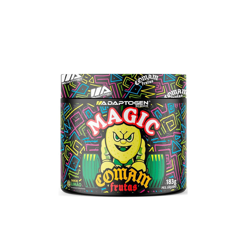 Explosão de energia com sabor frutado: o Magic Comam Frutas – Adaptogen é um pré-treino equilibrado que aumenta o foco, a disposição e a resistência, trazendo sabor leve e refrescante para seus treinos.
