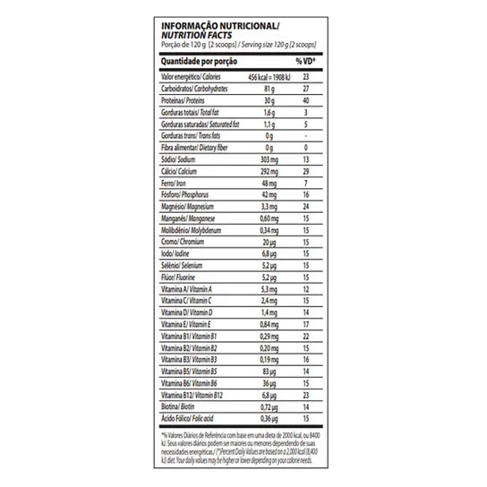 Consuma 1 porção de 160g (aproximadamente 4 dosadores) diluída em 300ml de água ou leite, preferencialmente após o treino ou entre as refeições. Pode ser fracionado ao longo do dia. A dosagem ideal deve ser ajustada por um nutricionista, de acordo com seus objetivos e necessidades.